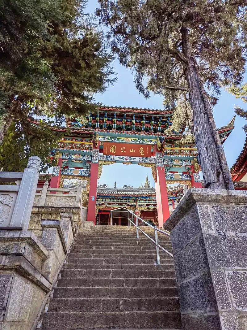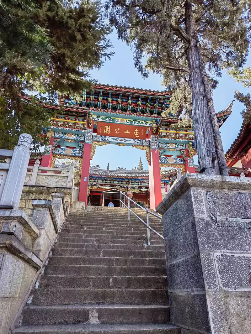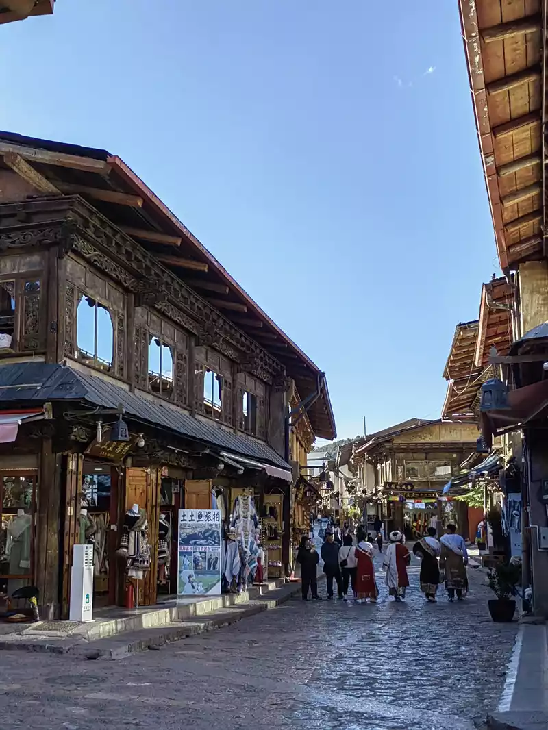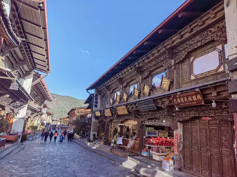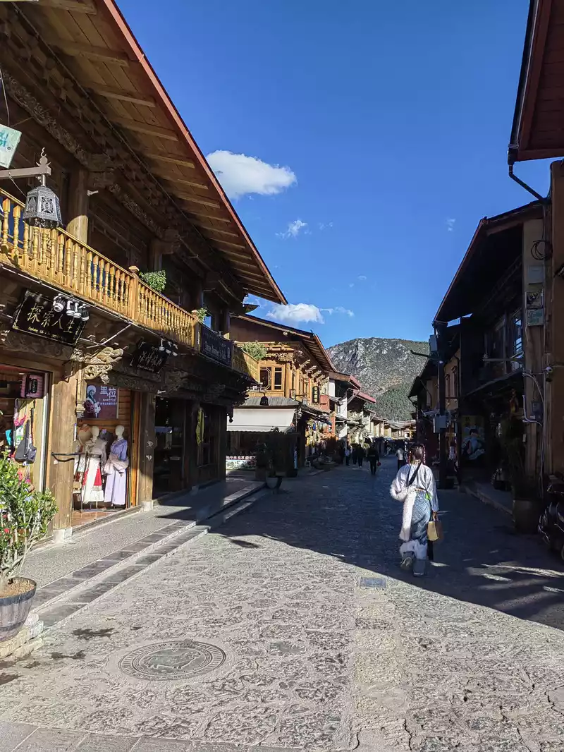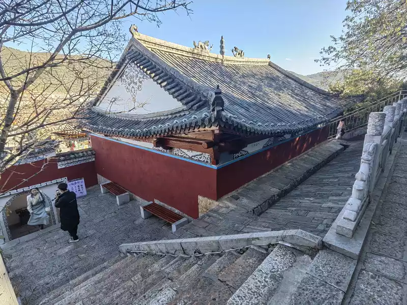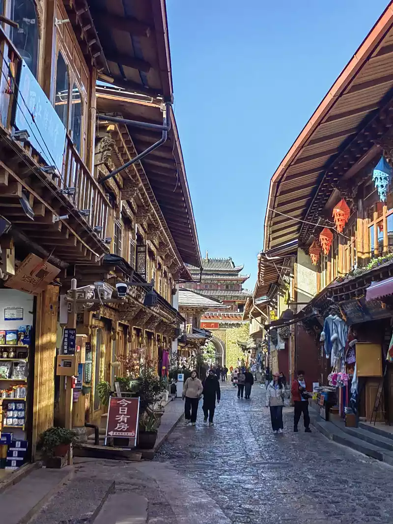 After descending the mountain, drive to the parking lot at Moonlight Square and then walk to Guishan Park and Dukezong Ancient Town.