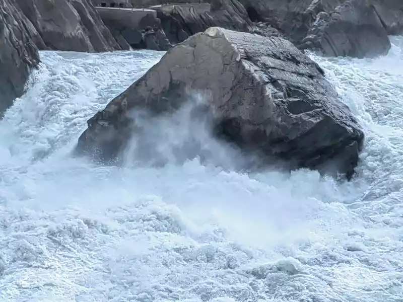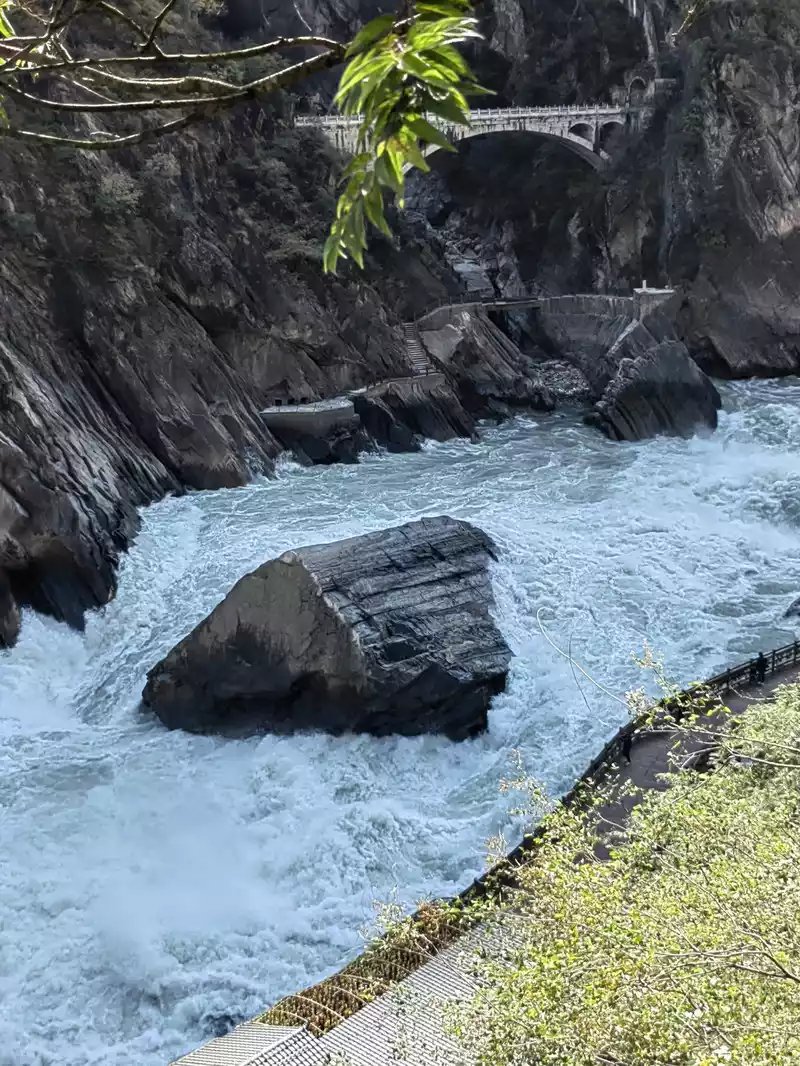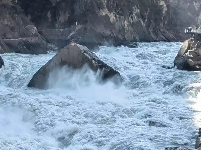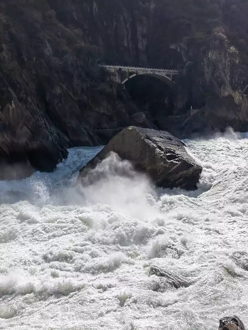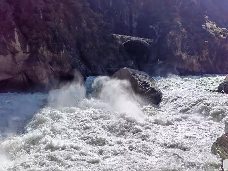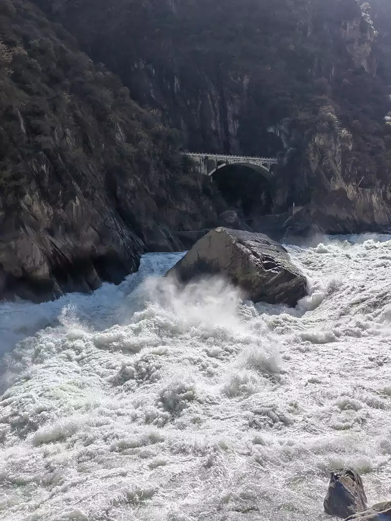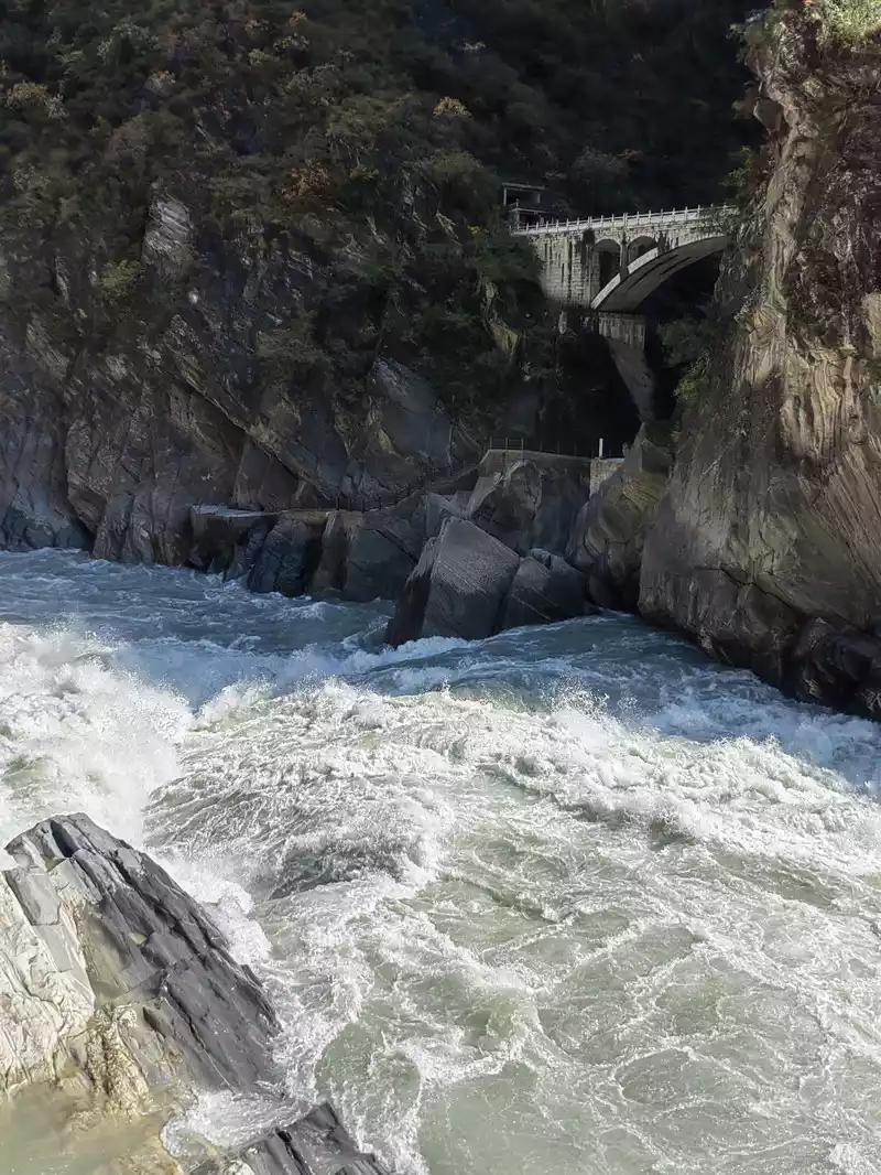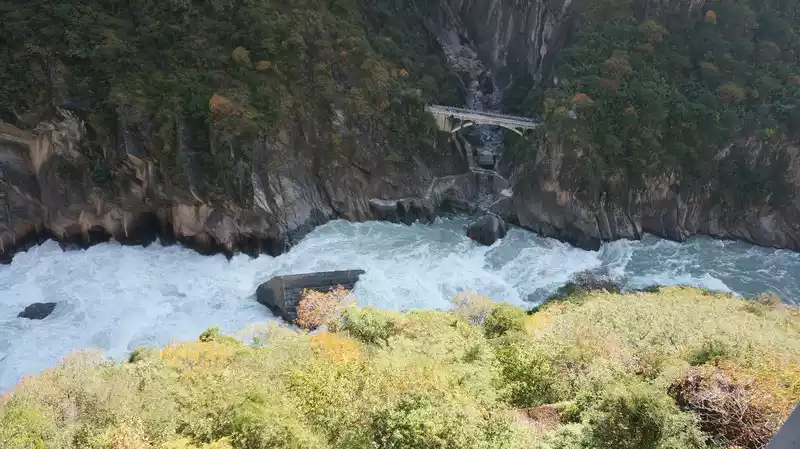 Tiger Leaping Gorge is one of the world's most dramatic canyons. Located southeast of Shangri-La City, Diqing Prefecture, Yunnan Province, it stretches approximately 20 kilometers. At this point, the Jinsha River is sandwiched between the Yulong and Haba Snow Mountains. The river narrows to just 20 to 30 meters at its narrowest point, and the enormous drop creates a turbulent flow. It has become a world-renowned tourist destination known for its unique, treacherous, majestic, and magnificent natural scenery.