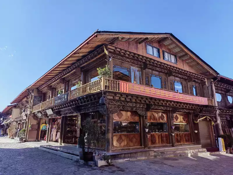 Located in the heart of the ancient city, Moonlight Square is surrounded by quaint Tibetan-style wooden houses, where locals live a peaceful life. To the west of the square is Big Turtle Mountain, also known as Turtle Mountain Park.
