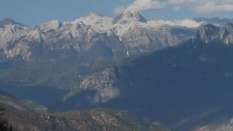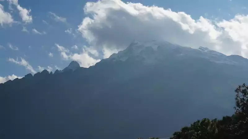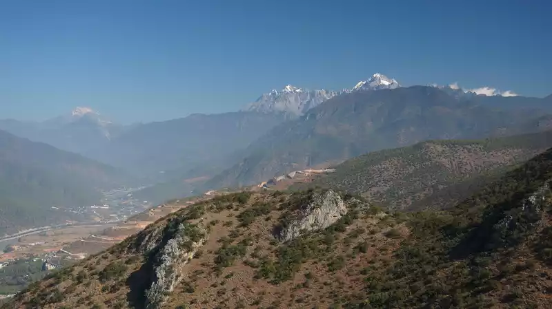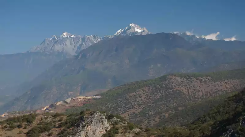 Looking up, you can see the majestic remnants of the Jade Dragon Snow Mountain.