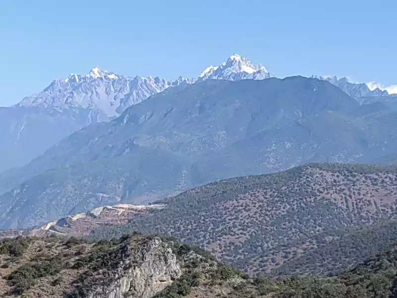 The Xionggu Viewing Platform is located on National Highway G353, which runs from Lijiang to Tiger Leaping Gorge. Since the opening of the highway, fewer tourists have taken this route, leaving the Xionggu Viewing Platform deserted and nearly abandoned. The Xionggu Viewing Platform is a small attraction, ideal for a quick visit. However, on clear days, the platform offers a panoramic view of Jade Dragon Snow Mountain, Haba Snow Mountain, and the First Bend of the Yangtze River, earning it the nickname "Three Scenic Spots in One."