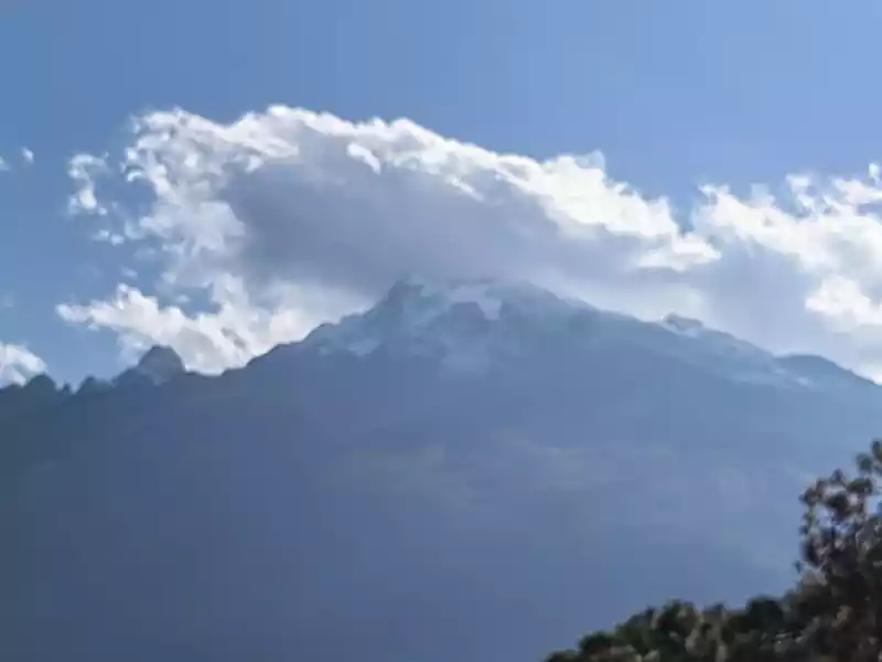 Haba Snow Mountain is located southeast of Shangri-La City, Diqing Tibetan Autonomous Prefecture, Yunnan Province. Its main peak, at 5,396 meters above sea level, is the fourth highest peak in Yunnan Province. "Haba" means "flower of gold" in the Naxi language. In folklore, Haba Snow Mountain and Jade Dragon Snow Mountain are considered brothers. The Jinsha River flows between these two towering peaks, forming Tiger Leaping Gorge, the world's deepest canyon. Haba Snow Mountain is said to be the only 5,000-meter-high snow-capped mountain in Yunnan Province where climbing is permitted, and it's the top choice for many mountaineering enthusiasts as their "first snow-capped mountain." Of course, at our age, it's impossible to attempt it.