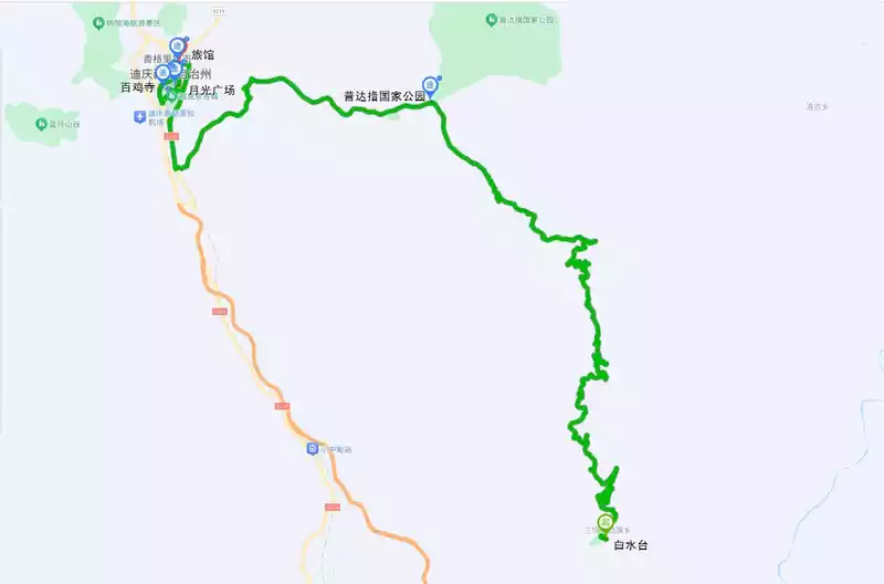 Actual itinerary: Baishuitai → Pudacuo National Park → Jinhuayuan Hotel in Shangri-La → Baiji Temple → Moonlight Square → (walk) Guishan Park → (walk) Dukezong Ancient Town → (walk) Moonlight Square → Jinhuayuan Hotel in Shangri-La, driving distance: 120.1 kilometers