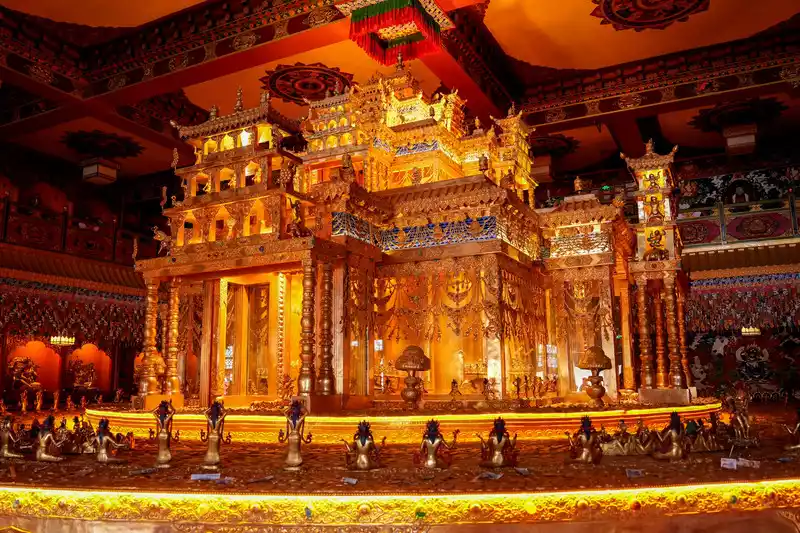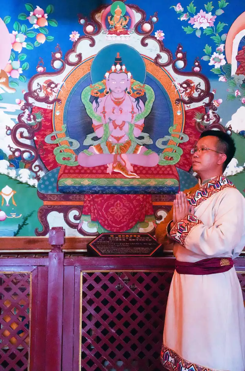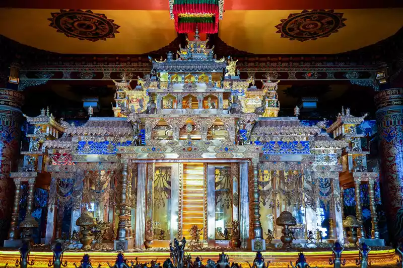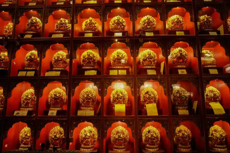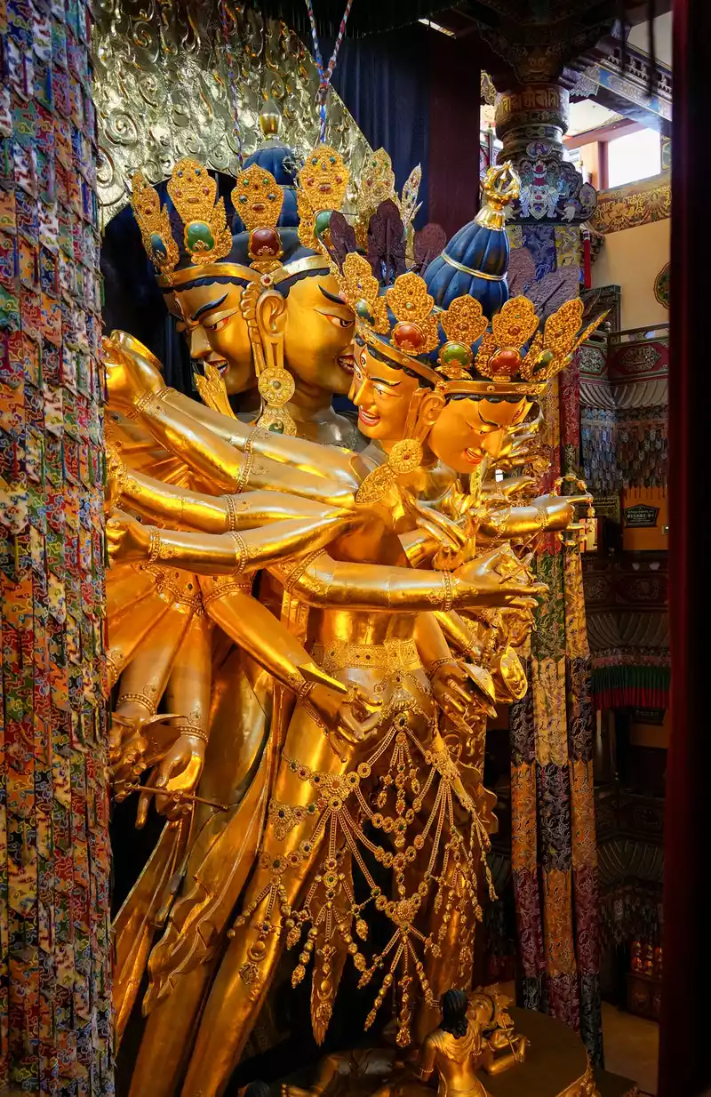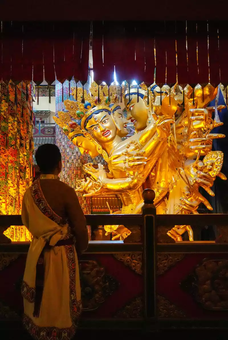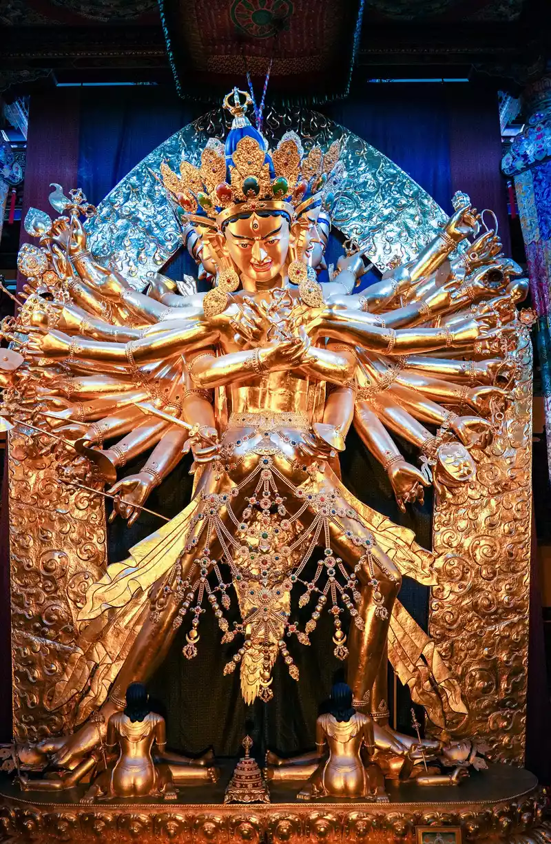 This is the largest indoor Kalachakra Buddha statue in China, forged using traditional Tibetan craftsmanship. The artistic effect changes with each orientation, showcasing the profoundness of Shangri-La culture.