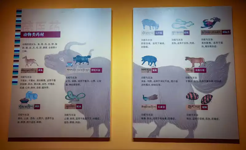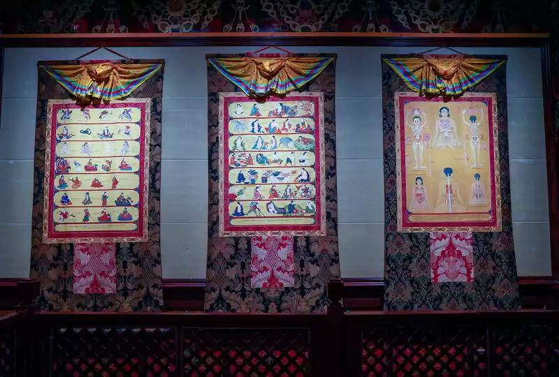 The Tibetan Medicine Thangka Display Area features China's most detailed and comprehensive collection of Tibetan medicine thangka wall charts. The collection, comprising 175 hand-painted Tibetan medicine thangkas, was recently recognized by the Guinness World Records.