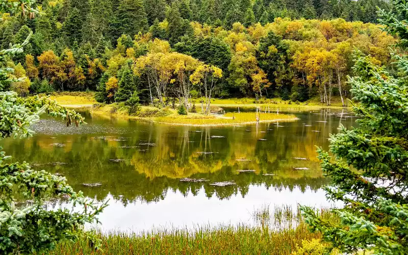 Pudacuo is located in the heart of the Three Parallel Rivers World Natural Heritage Site in northwest Yunnan. Its altitude ranges from 3,500 to 4,159 meters, creating a richly layered ecological landscape.