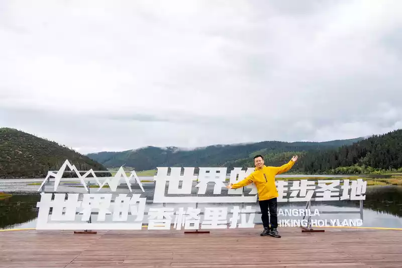 Classic check-in spots: In front of the "Shangri-La Hiking Holy Land" sign by Shudu Lake, various locations on the plank road, and on the boat.