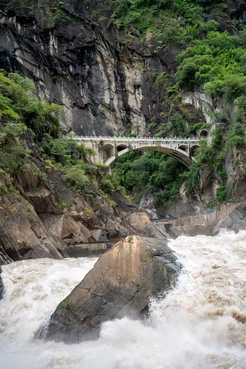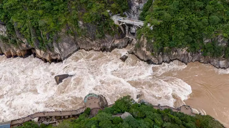 Here, dangerous peaks soar into the clouds. The Jinsha River rushes down through the first bend of the Yangtze River into the canyon between the Yulong and Haba snow-capped mountains, creating a large altitude difference and forming a series of majestic and magnificent waterfalls.