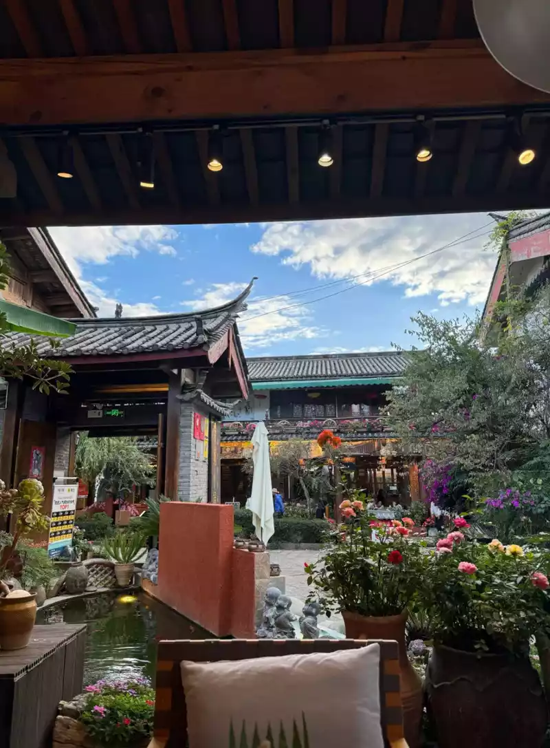 The best restaurant in Shuhe Ancient Town, Lijiang. I fell in love with it. I fell in love with it at first sight. The first thing I saw was the environment of the restaurant. There were flowers planted outside. I liked the interior decoration from the outside, so I came here without hesitation!