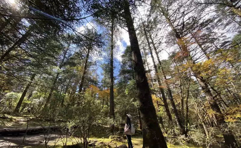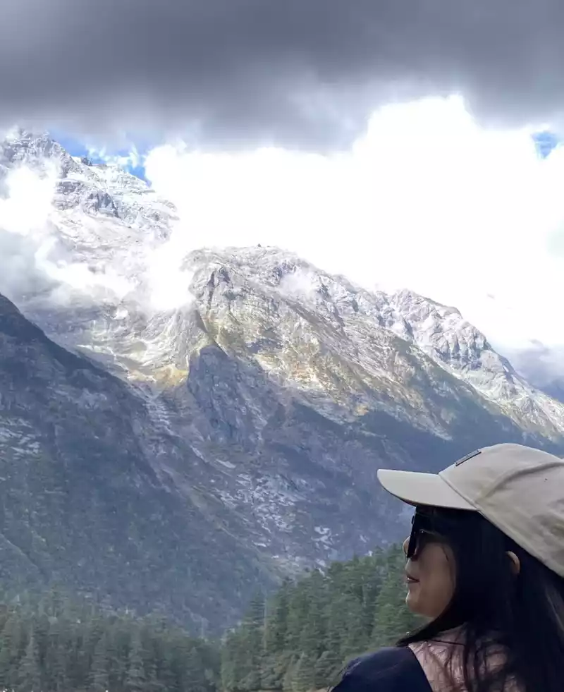 The big cableway is under maintenance these days and I can't go up, so I bought the small cableway. Cable car tickets can be grabbed by multiple people at the same time, at different times, to prevent being caught. Wait 120 seconds to see if someone else has already grabbed one, then there's no need to grab one. Small and medium-sized cable cars are easy to grab. The Yunshanping small cable car costs 60 yuan per person. The scenery is nice, with a lot of fir trees and a primeval forest. You can see the snow-capped mountains in the distance.