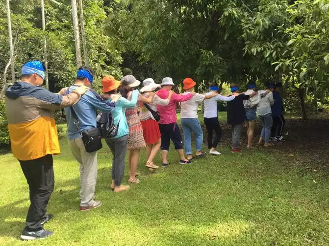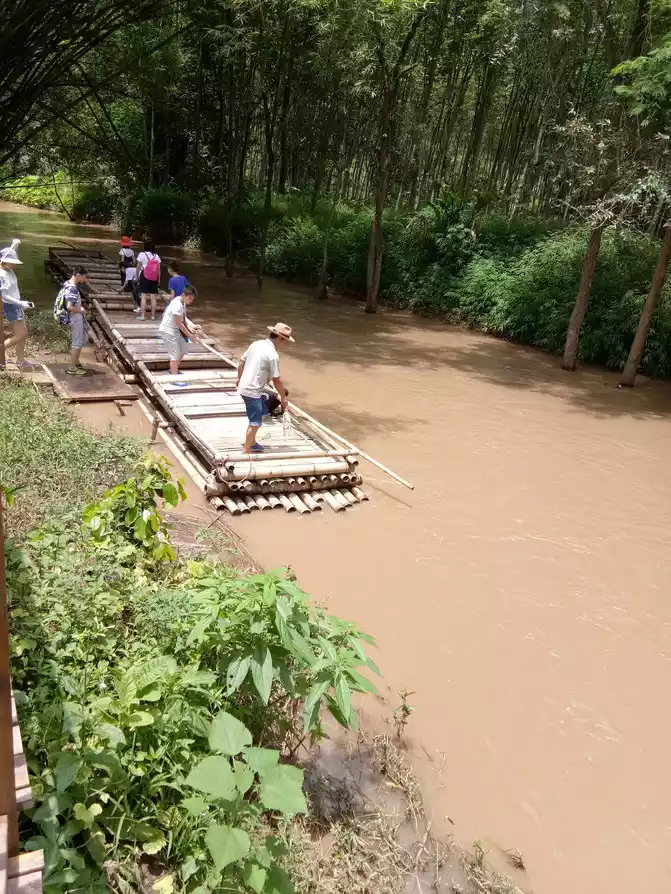 After lunch, take a bamboo raft to the next activity point, splashing water