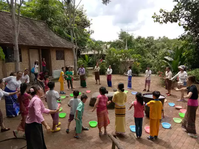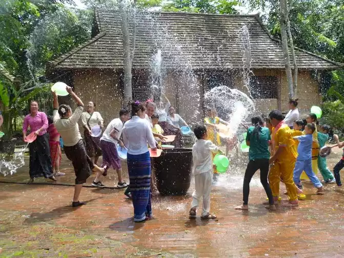 Change into Dai clothing and prepare to splash water, and perform a dance first