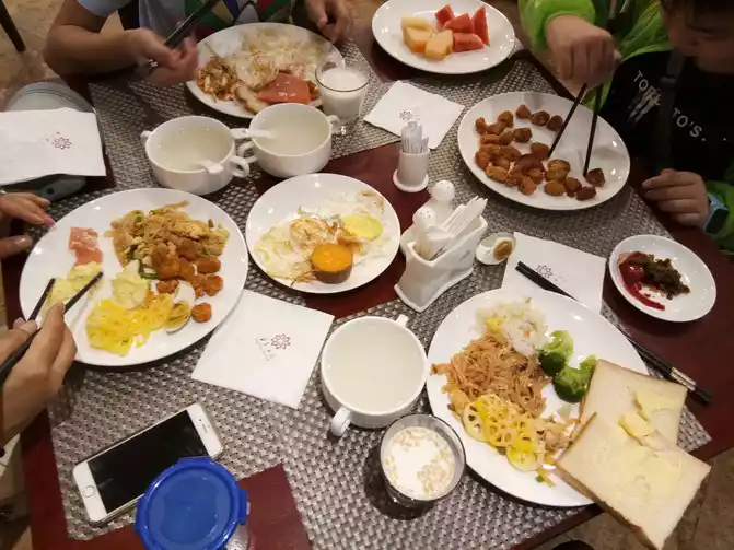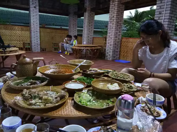 We had dinner in this room with hollowed-out walls. It started to rain while we were eating, and some of the rain drifted in, so we moved the table. As we were eating, the rain got heavier, so we continued to move the table in. Everyone had eaten and left, leaving only two or three people. The food was still being served. If I were to go home tomorrow, I would just pack up the meat to take away. src="https://dimg04.c-ctrip.com/images/1mf2l12000gyfrtda5E0F_R_800_10000_Q90.jpg?proc=autoorient" /> This weight of five large green mangoes was only 10 yuan, and it was such a treat.