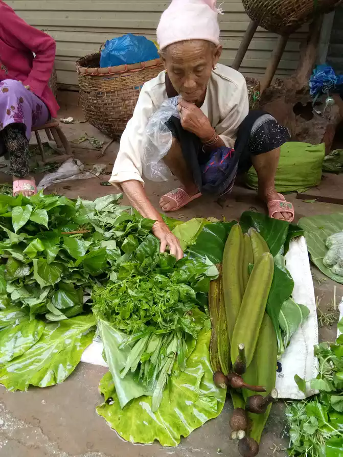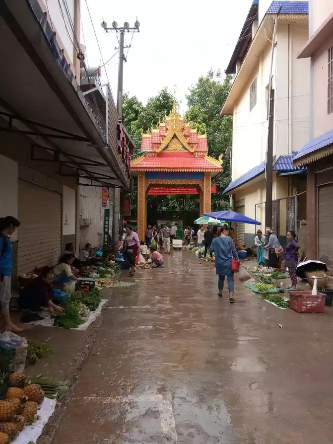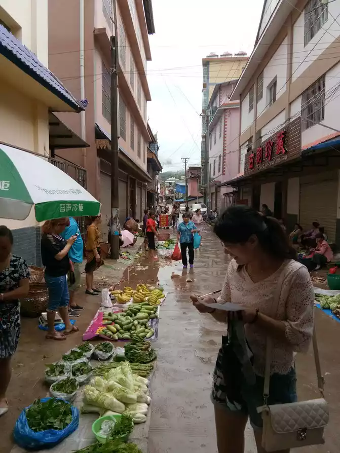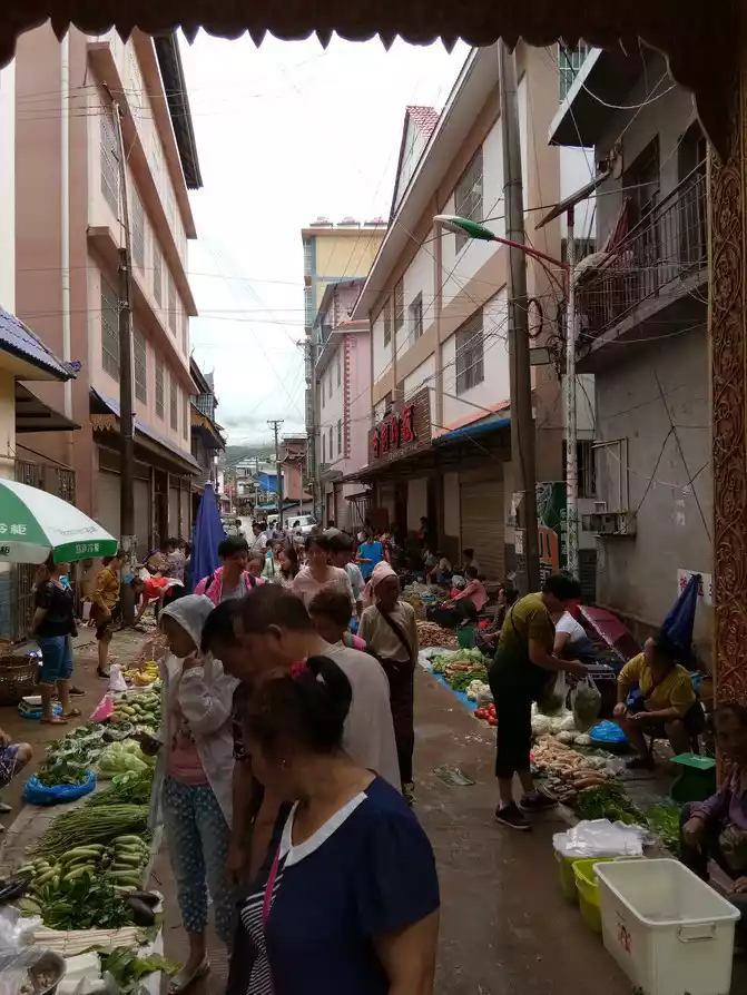 Walk straight to the right after leaving the hotel, cross the suspension bridge, turn left and you will reach the local vegetable market in a few dozen meters.