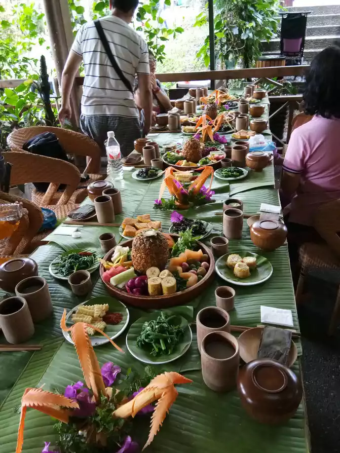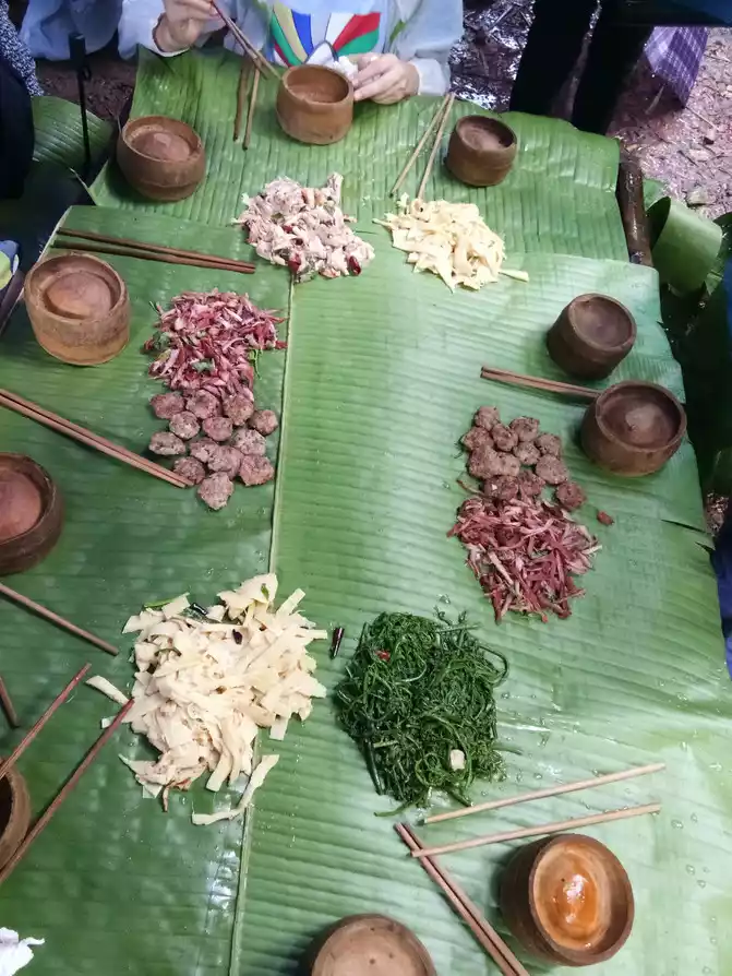 During our stay in Xishuangbanna, we ate every meal on banana leaves, skipping the tablecloth.