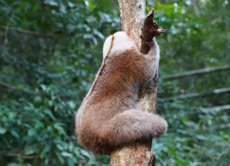A surprise was right in front of us: a small animal clung to a tree trunk, its eyes staring at us.