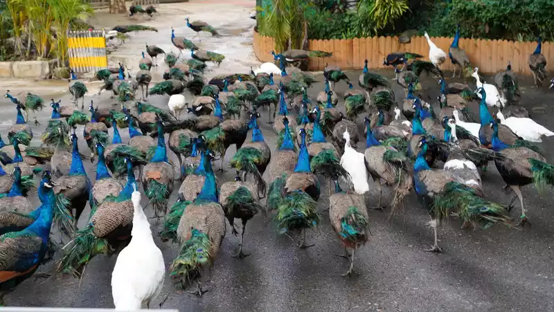 There's a peacock release show every hour in the Primeval Forest Park in the afternoon.