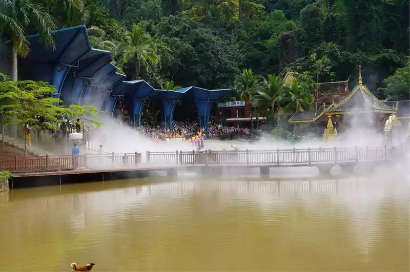 With a forest coverage rate of over 98%, Xishuangbanna Primeval Forest Park features valley rainforests, flying peacocks, folk songs and dances, delicious food, and a water splashing carnival. It is one of the largest comprehensive eco-tourism attractions in Xishuangbanna.