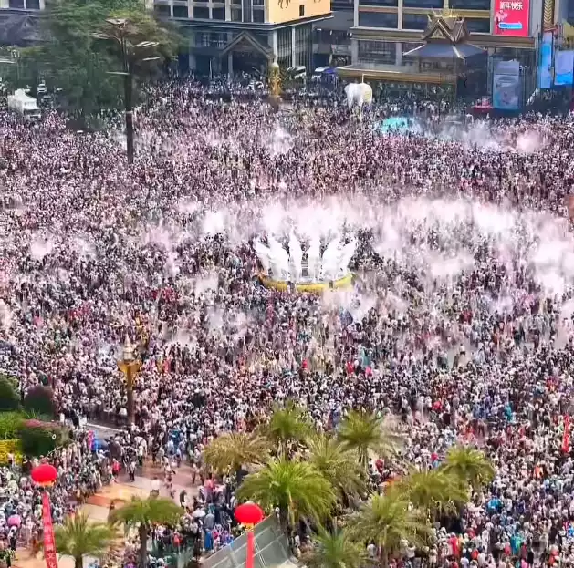 It was over an hour later that we finally got a taxi outside the station. When we booked our accommodation a few days ago, the online information showed that all the hotels and B&Bs were fully booked. It was my wife who kept looking for bargains and finally found a B&B in Jiangbei. The driver clearly told us that we definitely couldn't take the Xishuangbanna Bridge in the city center, and could only take a detour via the Liming Bridge outside the city. However, by chance, the accommodation we booked was not far from the Liming Bridge, next to the Xishuangjing scenic spot in Gaozhuang. The scene before me was filled with festive cheer. Water stains dotted the streets, and buckets of water were often placed outside businesses for battle. Nearby, men and women, exhausted and listless, were returning from water fights in the city. Everyone was polite, though, most greeting and asking for permission before spraying water, just for the fun. All the surrounding restaurants were packed, overflowing with people inside and out. Everyone was in perfect harmony, playing water fights away from the dining area, so they didn't disturb each other and enjoyed the harmonious atmosphere. After settling in, I headed out to see the Xishuangbanna Bridge, a place I'd heard people talking about all day but hadn't gotten to see. You can have water fights along the way and release sky lanterns near the bridge. It's said that all flights over Jinghong before 10 PM tonight are grounded for the lantern ceremony. The local government is really doing their best to ensure a lively and safe festival! Unexpectedly, the first thing I saw not far from home was a quarrel between two northerners in the street. It turned out to be a family of three strolling around when a single soldier in full gear approached. The husband looked at the other man with a murderous look and quickly said, "We're a family of three with a child, so stop yelling at me." But unexpectedly, just as he finished speaking, a few streams of water sprayed onto him, and he immediately erupted in cursing. The soldier even complained, "Didn't we say we can't get angry these days? Why are you being so aggressive?" Fortunately, the locals had no interest in watching, and they kept their verbal exchanges to themselves. After a while, they probably tired of the cursing and dispersed.