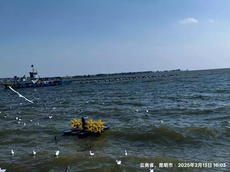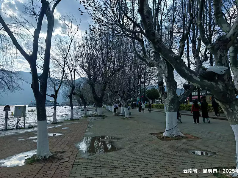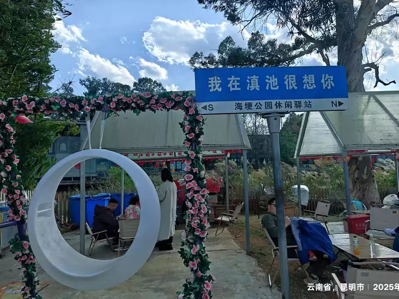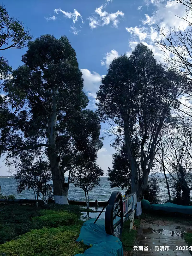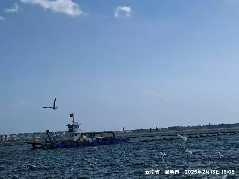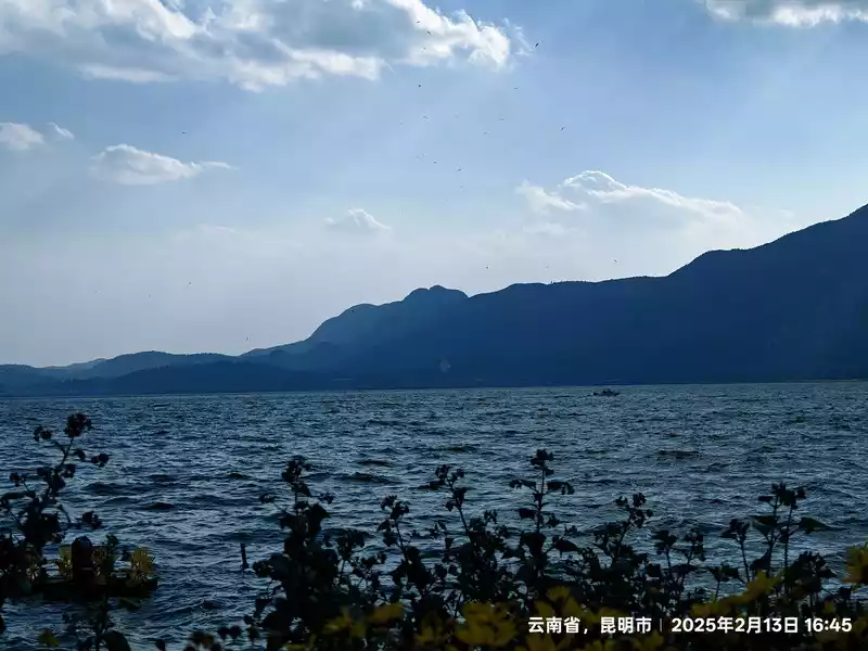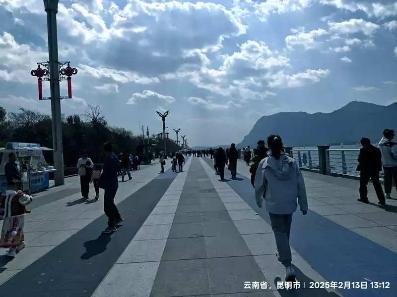 At noon on February 13th, after enjoying some delicious cross-bridge rice noodles, I headed to the Haigeng Dam, a place I'd longed to visit. Haigeng Dam is located in Xishan District, Kunming, Yunnan Province, on the northern side of Caohai on the east shore of Dianchi Lake. It stretches from Yongchang Wetland Park in the north to Haigeng Park in the south. The dam is vast and long, approximately 2.8 kilometers long. As Kunming's largest waterfront viewing platform for Dianchi Lake, it serves as a link, connecting people with its beauty.