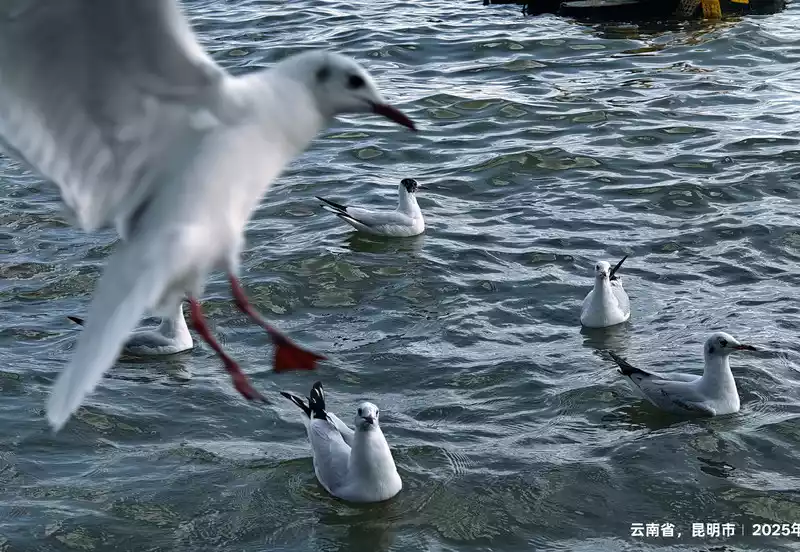The dam was bustling with couples filming on location. Despite spring, the wind was still biting. Since 1985, every winter, Kunming has welcomed a special flock of "little elves"—red-billed gulls that have arrived from distant Siberia to spend the winter. Kunming residents have a deep bond with these birds, long considering them old friends, and the gulls have considered Kunming their second home.