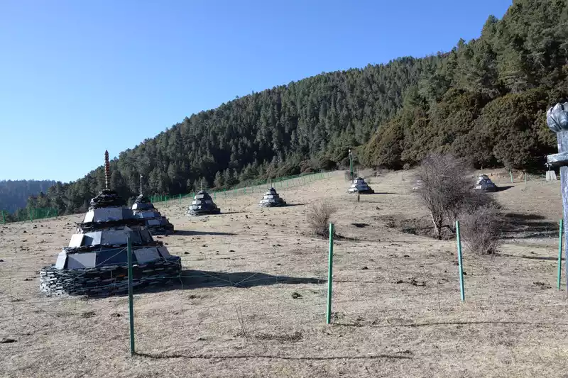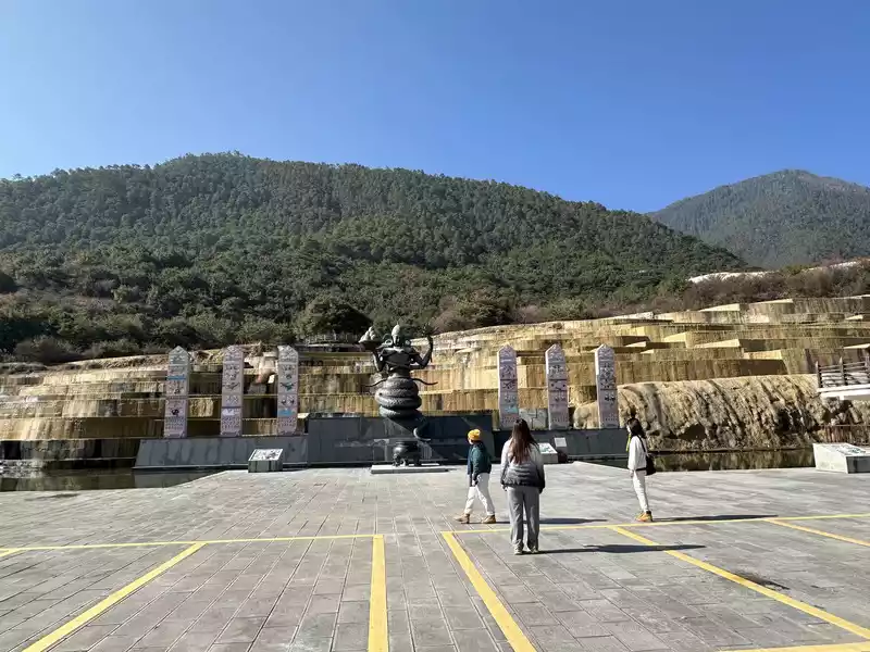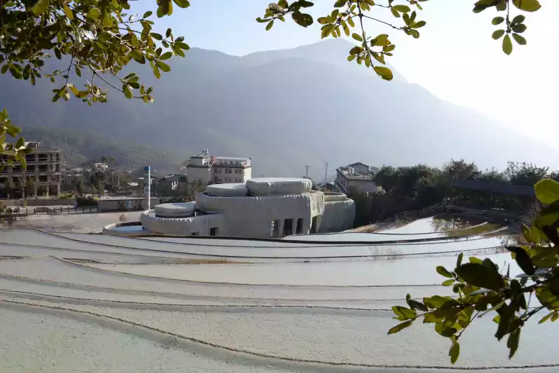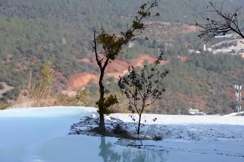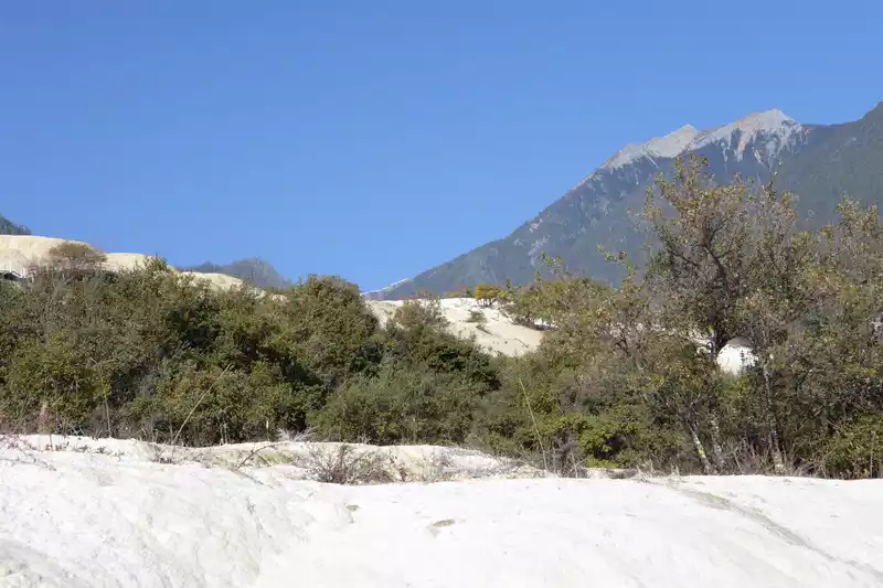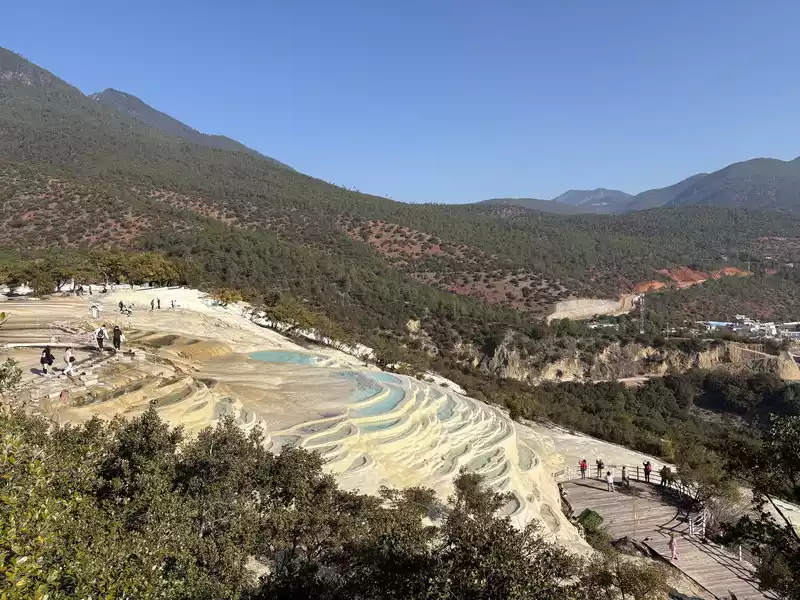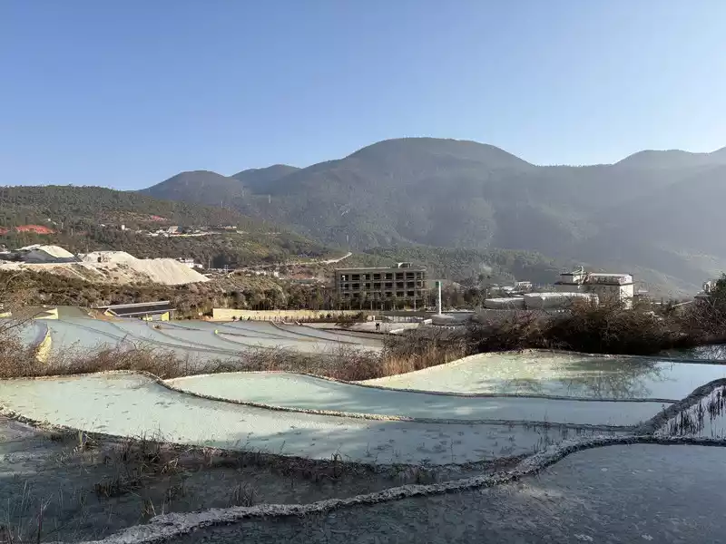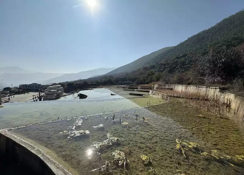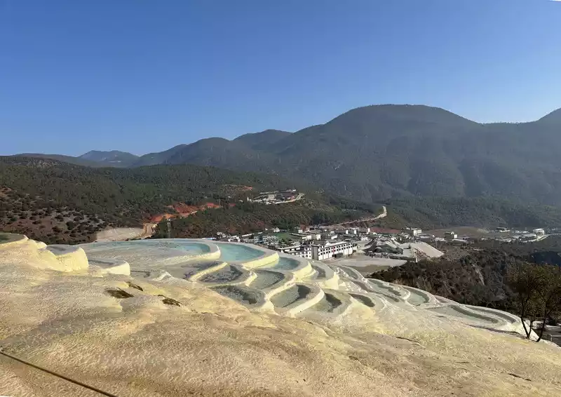 Baishuitai is located at the northern foot of Haba Snow Mountain. The platform covers an area of about 3 square kilometers. It is the largest cold spring type freshwater carbonate spring petrification platform discovered in my country so far. Its main cause is that the calcium carbonate dissolved in the spring water decomposes and precipitates after exposure, forming spring petrification. The petrification is stacked layer by layer and is white. It gradually slopes from west to east, like layers of terraced fields. Hence the name Baishuitai, and the beautiful name of "the immortal's abandoned fields".