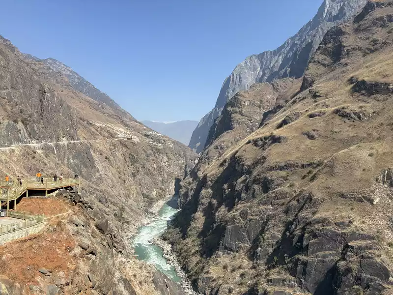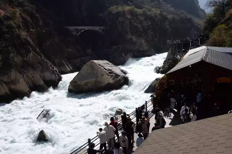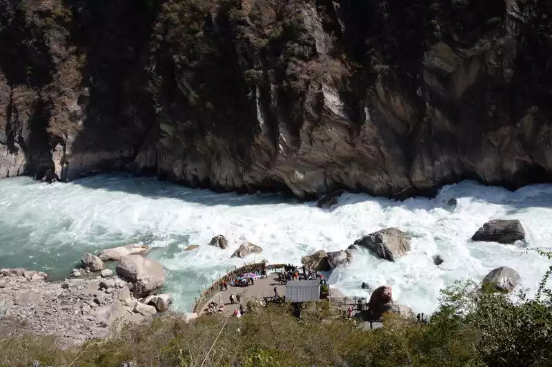 Go a few kilometers further and purchase tickets at the ticket office before you can officially enter the Shanghutiao Scenic Area. You can overlook the beauty of Haba Snow Mountain and Jade Dragon Snow Mountain from the top of Hutiao. It is the narrowest section in the whole canyon. The river is only more than 20 meters wide. The mountain is extremely steep, with knives and axes cutting it, and thousands of walls standing tall.