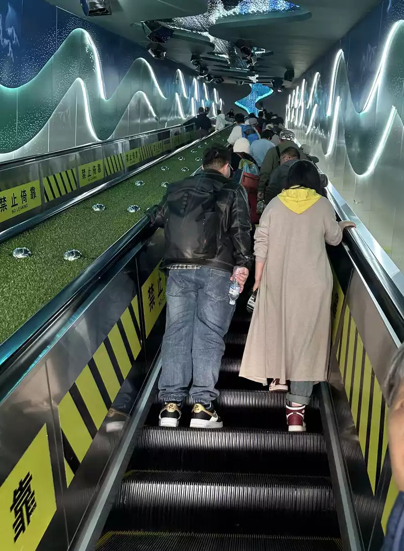 The ground was too deep and we couldn't climb any higher. My wife and I chose to take the escalator back to the ground, which costs 50 yuan per person for a single trip (70 yuan for a combined ticket of 70 yuan per person). The escalator goes up and down almost vertically. There are 4 sections in total, and each section has about sixty or seventy steps. It’s easy to pay for it.