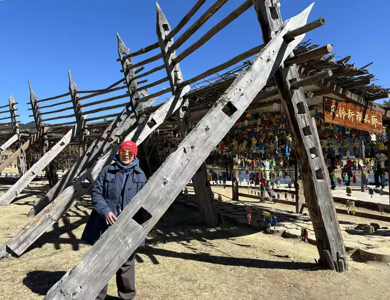On the way down the mountain, we visited Yangtang Kangcan, one of the eight Kangcans of Songzanlin Monastery, which was built during the reign of Emperor Kangxi of the Qing Dynasty. Ringing bells and praying for blessings in front of Yangtang Kangshen Temple Yangtang Kangshen Temple