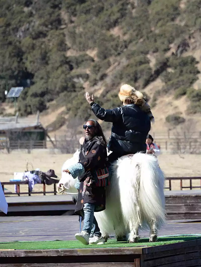 We walked on the plank road with green mountains on our backs and green water in front of us, passed through the Wind Chime Prayer Corridor, walked past the "Hiking Holy Land" landmark, checked in at the altitude of "3595", walked on the ice and snow by the lake, and watched the white yaks and the interaction between their Tibetan owners and tourists. The beautiful scenery cheered up our mood and the interest dispelled our fatigue...