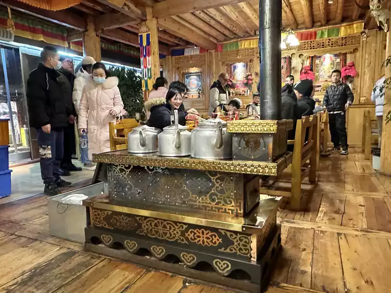 Our guide took us through several temples, where we experienced the millennia-old history and faith of Tibetan Buddhism, and the compassion and wisdom embodied in each Buddha statue. The monastery (Zhacang), which can accommodate 1,600 people and serves as a place for monks to study scriptures and cultivate teachings, was particularly noteworthy. Hundreds of monks sat quietly in the temple hall, each holding a small cloth bag and a small glass bottle before them—perhaps their daily rations. Their ascetic determination and perseverance were awe-inspiring.