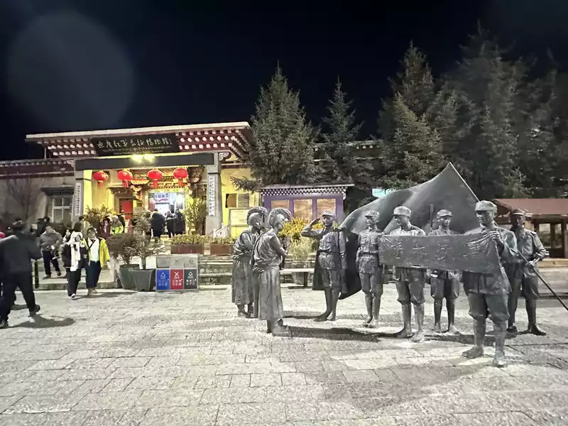 To the north of the square is the Diqing Red Army Long March Museum. Looking back at Guishan Park, the wonderful combination of hillsides, temples, and prayer wheels is even more beautiful.