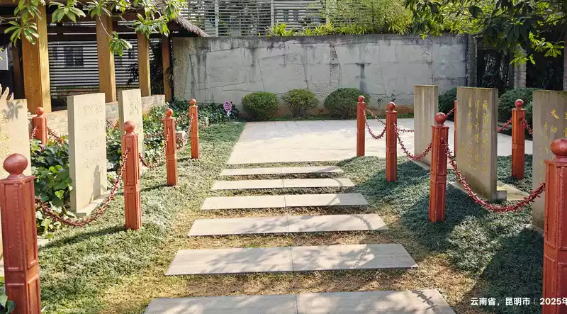 The tomb of the four martyrs of the "12.1" movement was built in March 1946, and the mausoleum area faces north and south, covering an area of 216 square meters, from right to left are buried the four martyrs Yu Zai, Pan Yan, Li Lulian and Zhang Huachang who died in the "12.1" movement. In front of the tomb of the four martyrs is the tomb of Mr. Wen Yiduo, an early leader of the Chinese Democratic League, a famous poet and a well-known scholar, who was assassinated by the Kuomintang reactionaries on July 15, 1946.