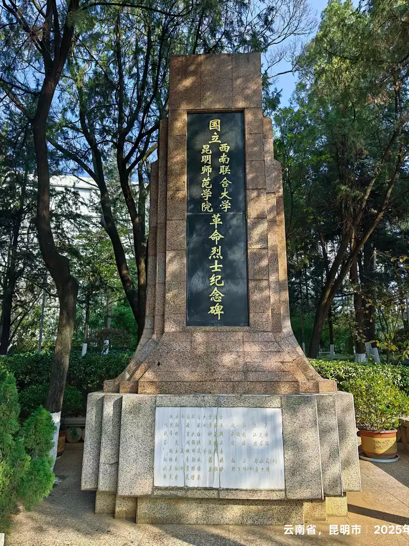 On the site of the former site of Southwest Associated University, landmark buildings such as the "12.1" Movement Memorial Square, the original classroom of Southwest Associated University, the Monument to Revolutionary Martyrs, and the Monument to Southwest Associated University tell the history of the students of the United University forging ahead in the smoke of war.