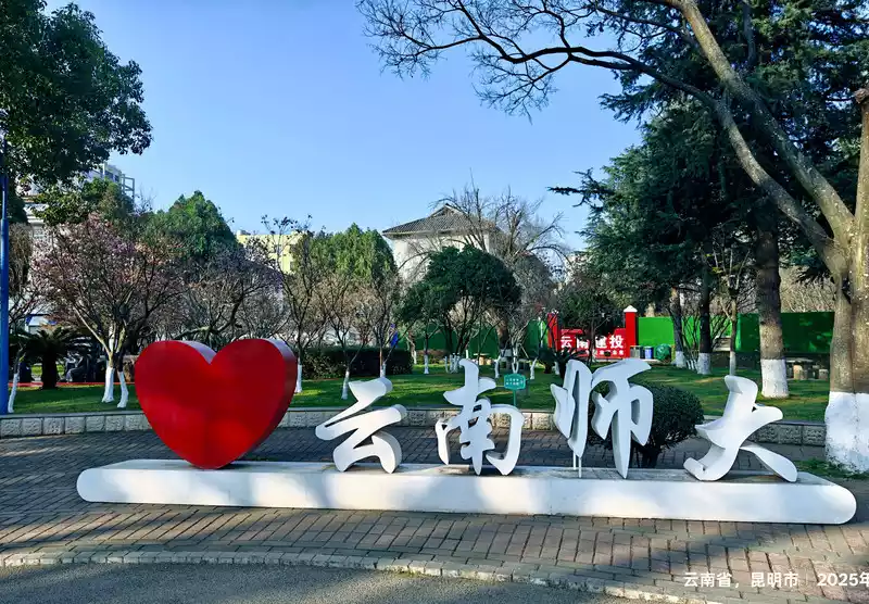 Moving forward, there is a heart-shaped pattern and a few large white characters of Yunnan Normal University, and the National Southwest United University Memorial Pavilion.