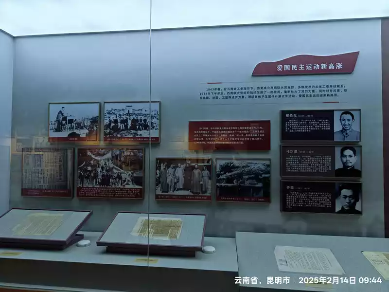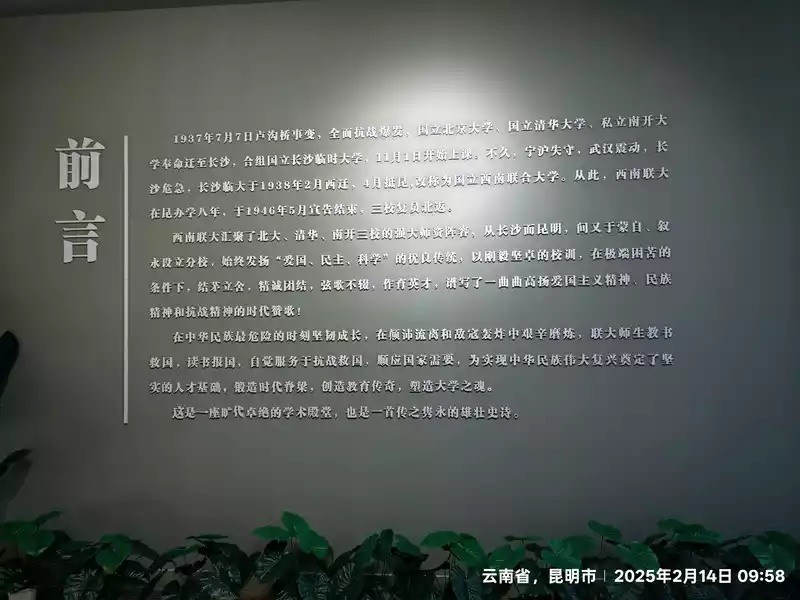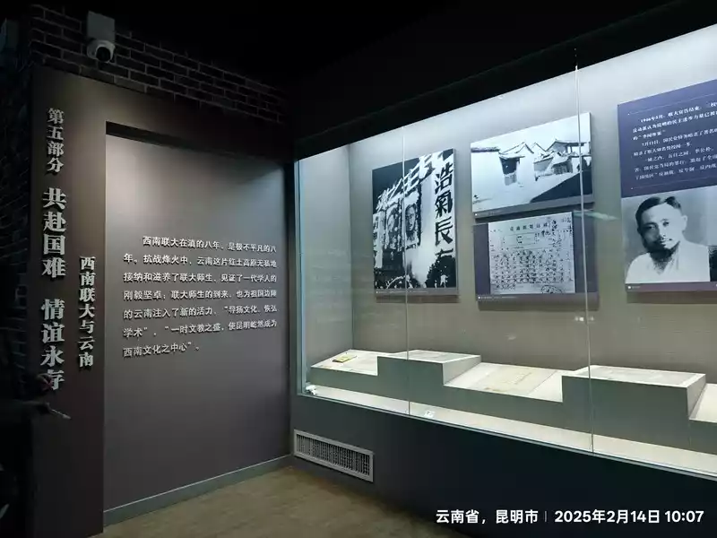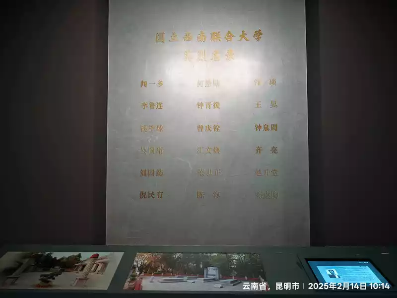 Enter the Southwest Associated University Memorial Hall. The Southwest Associated University Memorial Hall, established in 1985, covers an area of 13,320 square meters, with a building area of 2,332 square meters, an exhibition area of 1,422 square meters, and a collection of 1,218 cultural relics. The museum features two exhibition halls (the National Southwest Associated University Memorial Hall and the "December 1st" Movement Memorial Hall) and one event hall. It also features three permanent exhibitions: the History of Southwest Associated University, the History of the "December 1st" Movement, and the Life and Deeds of Li Gongpu and Wen Yiduo. Utilizing modern audio, visual, and electronic displays, it boasts the largest and most comprehensive collection of historical materials related to Southwest Associated University and the "December 1st" Movement in China. As I slowly stepped through the historic gate, I was instantly enveloped by a solemn and dignified atmosphere. The yellowed photographs before me, like messengers of time, transported me back to that era of war and smoke. The teachers and students in the photos reveal a deep thirst for knowledge. Even in the spartan classrooms, with the constant roar of enemy aircraft overhead, they remained focused on their textbooks and the writing on the blackboard.