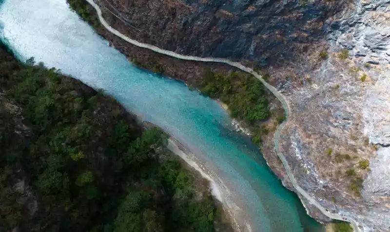 Canyoning is more relaxing than ziplining. As the kayak turned the first bend, the boatman, Gesang, suddenly burst into song. Tibetan songs mingled with the roar of the rapids, echoing through the cliffs, making the scenery on both sides seem even more vibrant.