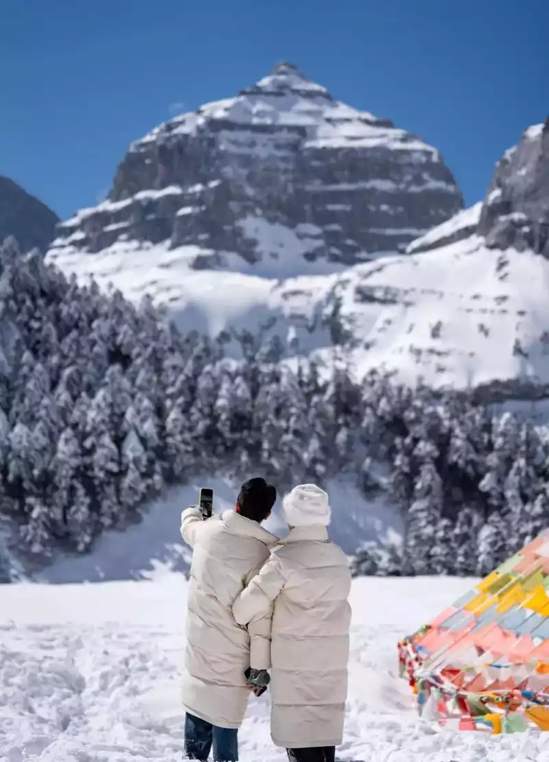 As the car spun out its 17th drift on one of 108 hairpin bends, the Tibetan driver, Tashi, suddenly rolled down the window. A biting wind blew in snowflakes, and the mist resembled torn cotton wool. A village suspended in the clouds darted into my eyes—this was Bala Village, a thousand-year-old village perched on a 3,000-meter cliff. After lunch, we drove to the summit of the Shambhala Pagoda Snow Mountain. Every time the altimeter ticked, my breathing became heavier. As we stumbled off the car at the 4,250-meter pass, we saw a tower-shaped peak piercing the sky through the clouds. The guide said it was a natural pagoda.