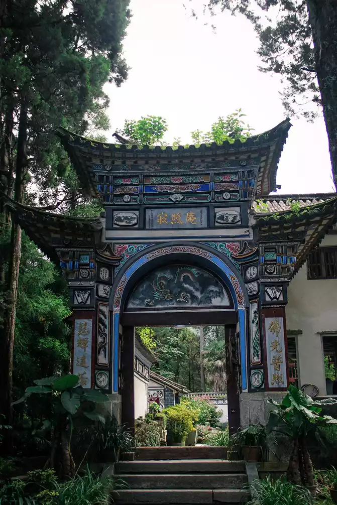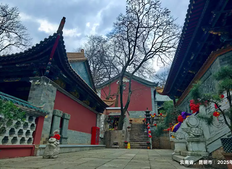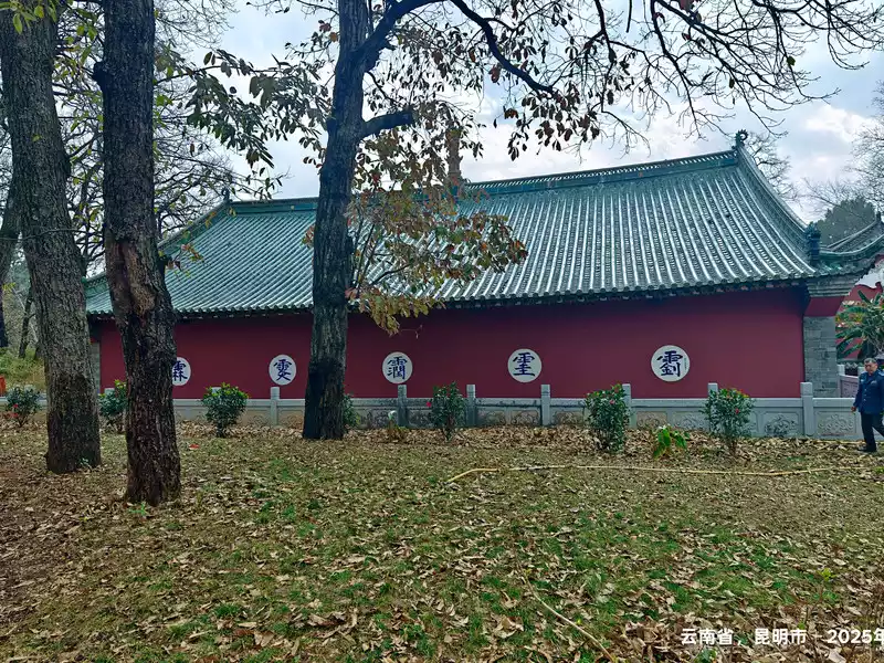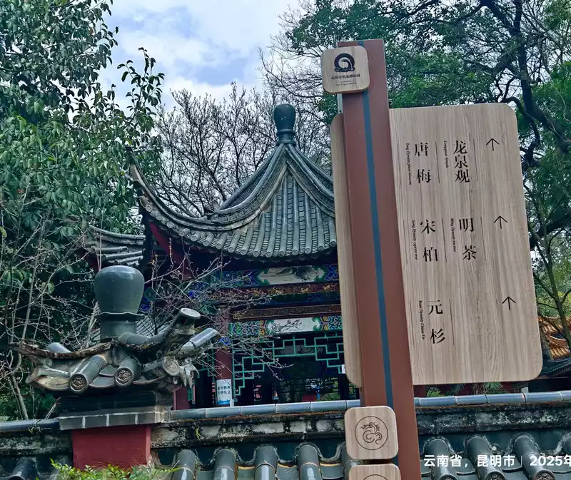 Heilongtan Park mainly consists of two major scenic areas: the ancient buildings and the "Longquan Plum Blossom Exploration" area. Shuo Qing, a Qing Dynasty poet, once inscribed the couplet, "Two plum trees, a pool of water; mist and rain all year round, clouds halfway up the mountain." These fourteen characters perfectly capture the park's unique landscape. At the park's entrance stands a stone tablet inscribed with the words "Plum Melody," constructed from stacked bluestone. The park's entrance is anchored by a turquoise archway, a charming and antique garden structure that instantly draws visitors into a poetic atmosphere. The plum garden and the ancient buildings are connected to each other. “Exploring the Plum Blossoms at Longquan” is one of Kunming’s new sixteen scenic spots. The park boasts ground-planted plum trees, plum tree stumps, and over 13,000 century-old plum trees, making it the largest plum blossom viewing destination and research center in Southwest China. Currently, over 200 varieties of plum blossoms are in full bloom, their delicate fragrance lingering, inviting visitors to explore further.