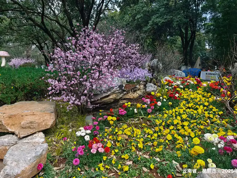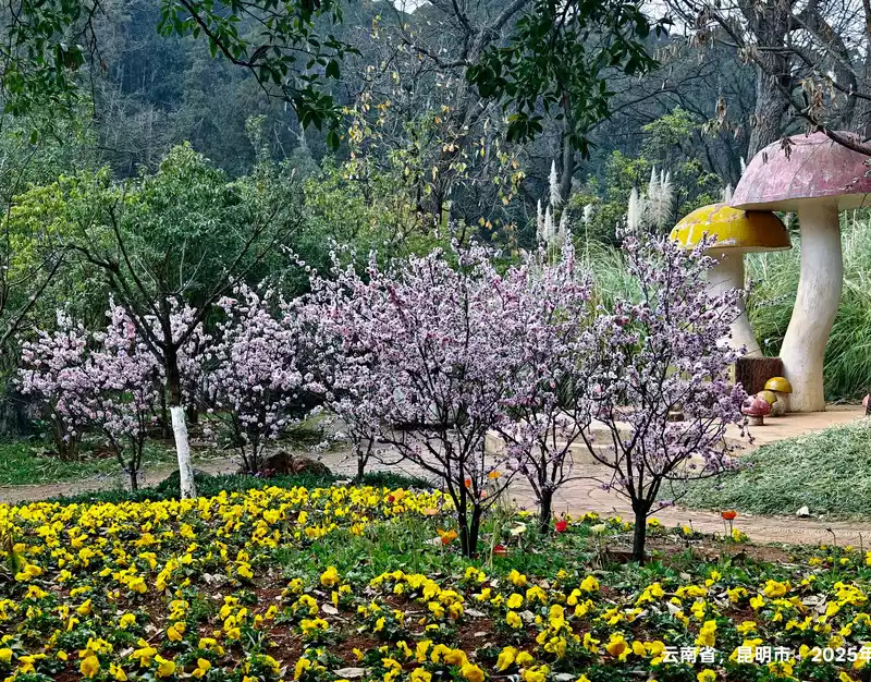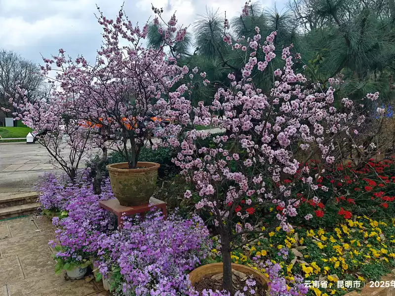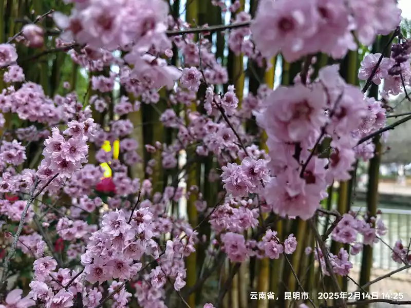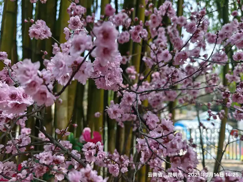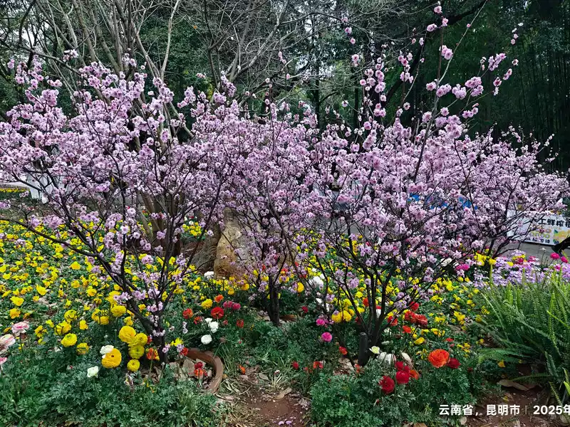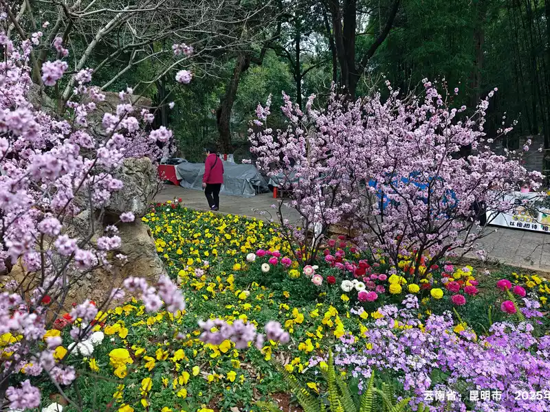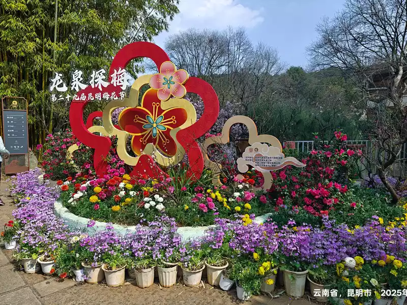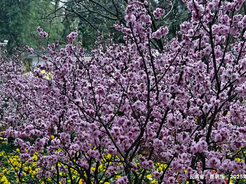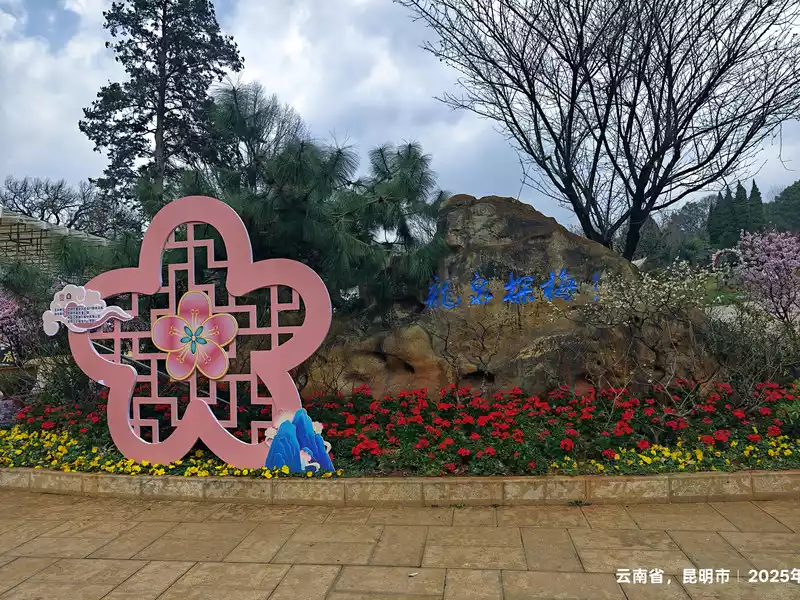 It's said that since Daoan planted plum trees in the Tang Dynasty, Heilongtan Park has had an inextricable bond with plum blossoms. Today, it boasts Kunming's largest, oldest, and finest plum garden, ranked among the top ten plum gardens in China and the largest landscape plum garden in Southwest China. Strolling through the garden, plum blossoms blanket the hills, blooming profusely and exuding fragrance. Millions of blossoms compete for beauty, layer upon layer, forming clouds and rosy clouds. The fragrance permeates the garden, transforming it into a dreamlike wonderland, with petals scattering in a riot of color and a subtle fragrance lingering in the air.