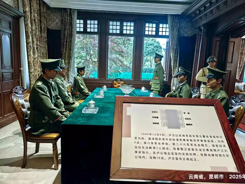 Today, this elegant mansion, with its bright yellow exterior, stands quietly. Those unfamiliar with it find it hard to imagine the turbulent historical events it witnessed. On December 9, 1949, to deceive Chiang Kai-shek's military and political leaders and spies planted in Kunming, Lu Han, under the pretext of holding an important military meeting, detained Zhang Qun, head of the Southwest Headquarters Office; Li Mi, commander of the Eighth Army; Yu Chengwan, commander of the 26th Army; and other key military and political figures within the mansion. He then urged all parties to revolt. With the strong support of the Chinese People's Liberation Army, Yunnan achieved a peaceful uprising throughout the province, completely thwarting Chiang Kai-shek's plot to establish an anti-communist base there and making outstanding contributions to the liberation of Southwest China.