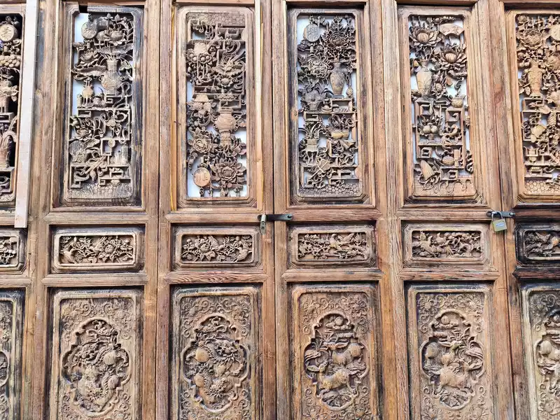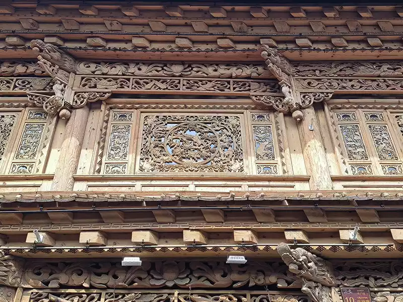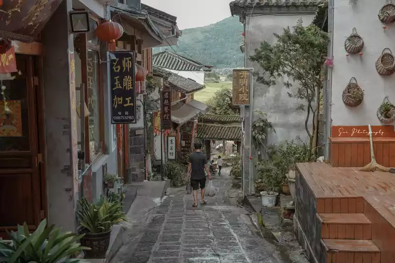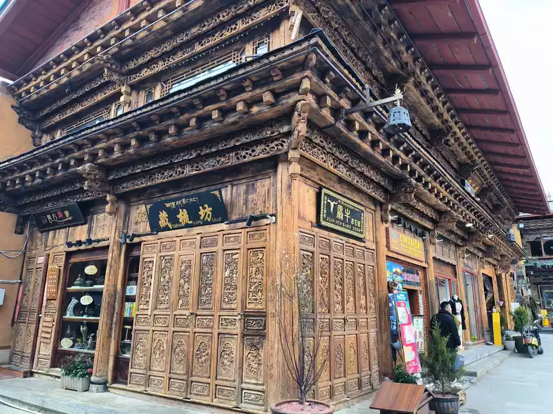 At 10:30 am, we entered the ancient city from the north gate and walked around the central area. Most of the shops were various shops and B&Bs. It lacked ancient charm and was similar to Lijiang Old Town. There was also a Square Street here. Many shops were not open yet and there were not many tourists. However, the wood carvings on the storefronts were very delicate and had some characteristics.