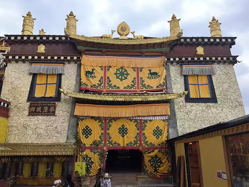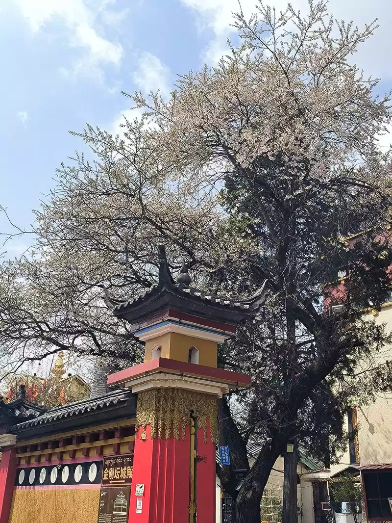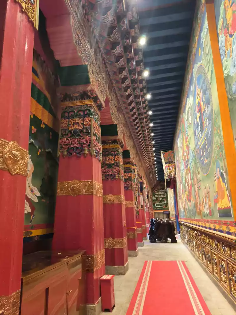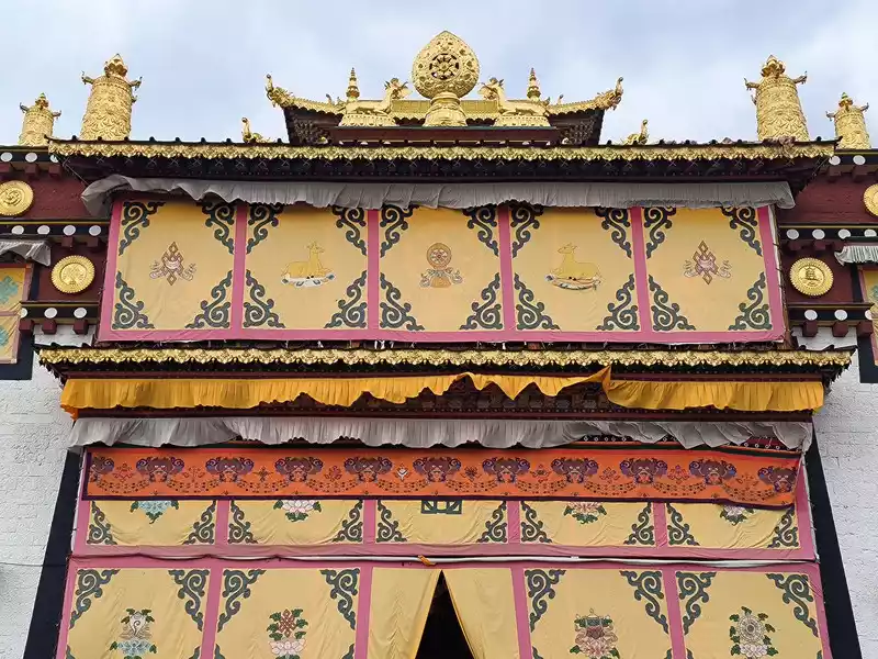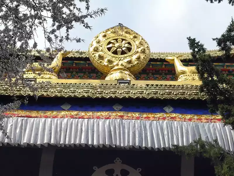 The Sakyamuni Hall on the east side is slightly lower than the Jikang Hall. Unlike the white walls of Tsongkhapa and Zhacang Halls, the outer wall of the Sakyamuni Hall is yellow. From a viewing angle, the stacked buildings in the southeast corner are most suitable for photography, but there is almost no written introduction to the Sakyamuni Hall on the Internet.