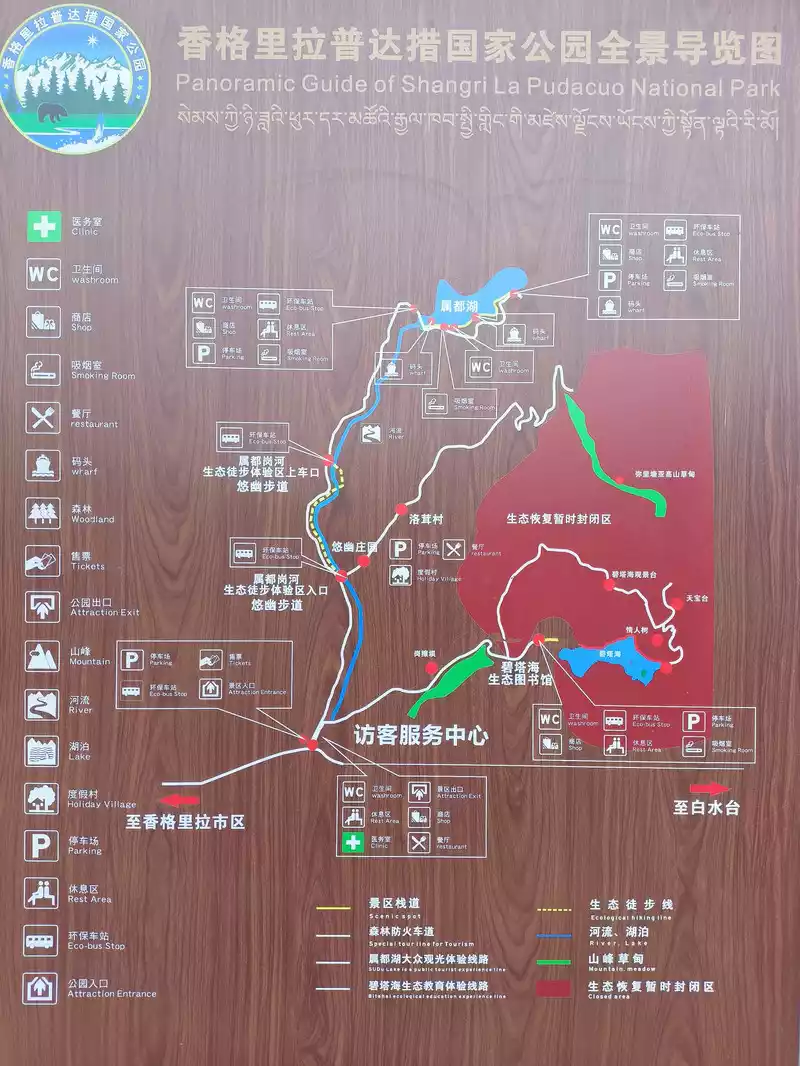 Pudacuo Forest Park is located 22 kilometers east of Shangri-La City, with an altitude of 3500 meters to 4159 meters. Among them, Pudacuo means "zhou lake" in Tibetan. It has lakes and wetlands, forest meadows, rare animals and plants, etc. The original ecological environment is well preserved. It is an important part of the world natural heritage "Three Parallel Rivers" and is mainly composed of two eco-tourism areas, Bitahai and Shudu Lake. I visited Pudacuo 20 years ago. It was snowing and the meadows were all yellow. This was my second visit. What I focused on was the first national park title it claimed. The concept of a national park originated from the United States. It is different from a strict nature reserve and a general tourist attraction. , but refers to natural areas delineated by the state that require special protection, management and utilization in order to protect the integrity of one or more typical ecosystems and provide venues for ecotourism, scientific research and environmental education. In 1872, the United States established the world's first national park, Yellowstone National Park.