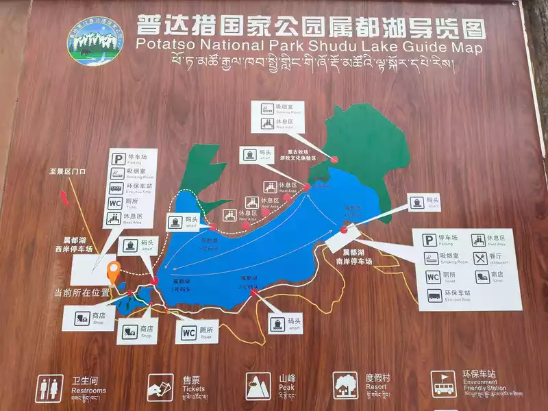 Transportation from Shangri-La city to Pudacuo is convenient. Special buses leave every half an hour. After entering the park, we took the scenic bus to Shudu Lake. "Shi" means cheese in Tibetan and "Du" means stone. Together they mean "cheese is as strong as stone". The lake covers an area of 120 hectares, with an average water depth of 20 meters and an altitude of 3595 meters. It is the highest lake in Yunnan Province and is surrounded by lush green mountains.