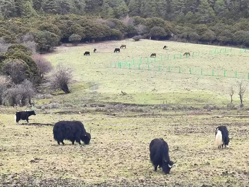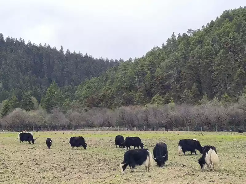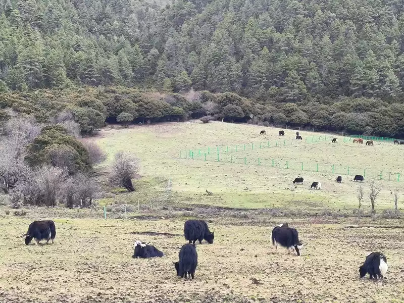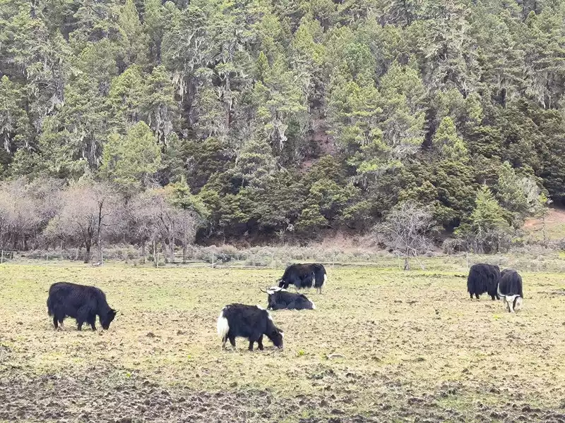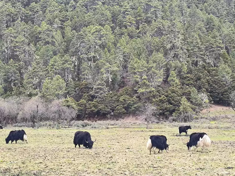 But it’s not the season of spring yet, and the rhododendrons haven’t bloomed yet, so we can’t see the unique sight of “cuckoo fish”, and the Bita Lake area is not open to tourists due to ecological restoration. Along the way, we mainly see forests, meadows, and yaks. It’s still a bit chilly, and the grassland has just sprouted some green buds. After more than 40 minutes, we returned to the same route.