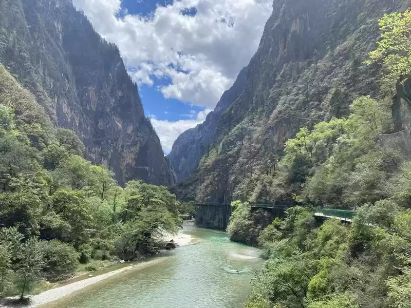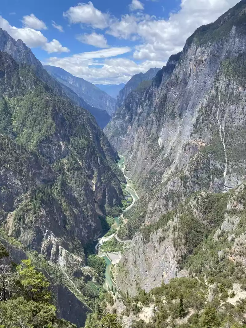 The second is the Jinsha River Bay. The mighty Jinsha River comes from the hinterland of the Tibetan area through mountains and valleys. Here it turns a perfect "Ω" shape around Rizui Peak, creating the symbol of the World Heritage "Three Parallel Rivers" The most beautiful landscape - the first bay of Jinsha River, which is 22 kilometers long and has a 270-degree corner. There are observation decks and rest stops here. Special bus drivers will stop here for 20 minutes to allow tourists to rest conveniently and take photos;
