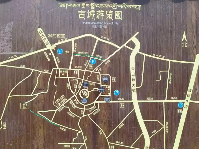 We plan to stay here for 4 days. The order of visiting attractions is ancient first, then modern, near first, then far. After getting off the train, we will head to the nearby Dukezong Ancient Town. The tourist distribution center next to the starting point of Bus No. 1 can store luggage for free. Dukezong Ancient Town, located in the south of the city, is one of the main historical sites of Shangri-La and the best-preserved and largest ancient town with Tibetan inhabitants in China, with a history of more than 1,300 years. Dukezong means "Moonlight City" in Tibetan, where "Duke" refers to white (symbolizing the moon) and "Zong" refers to castle. In the Tang Dynasty (676-679 AD), Tubo established the Shenchuan Governor's Office here, laying the foundation for the ancient city. In the Ming Dynasty, Zhongdian was occupied twice by the Mu chieftains of Lijiang. In the 27th year of Emperor Kangxi's reign in the Qing Dynasty (1688 AD), the Dalai Lama requested to trade on the Jinsha River. The Qing court approved the establishment of a market in Zhongdian. Dukezong became an important market for Yunnan-Tibet trade and an important hub of the Yunnan-Tibet Ancient Tea-Horse Road and the Yunnan-Tibet Highway. During the reigns of Emperors Yongzheng and Qianlong, business here was prosperous, and Sifang Street was crowded with merchants. We visited Dukezong Ancient Town 20 years ago, and the most impressive thing was the extra-large prayer wheel on Turtle Mountain.