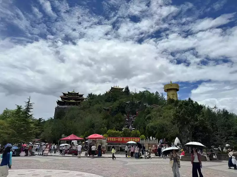 Noon: Arrive at Dukezong Ancient Town, check out the giant prayer wheel (requires multiple people to turn it together) and pray for your family; for lunch, enjoy the special yak hotpot and experience Tibetan cuisine.