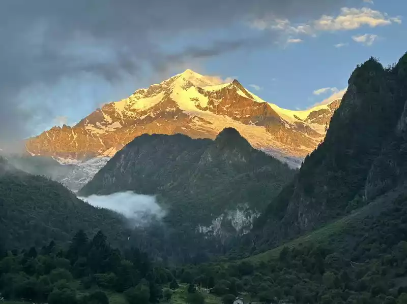 Morning: As we were traveling with three children, we did not complete the entire glacial lake hike (the local guide recommends this for those with experience and good stamina). We chose to take the children on some activities along the way and climb to the pass to enjoy the scenery. If it has just rained, there are mushrooms to pick along the way (for fun only, not recommended for consumption). The hike is approximately 7 kilometers.